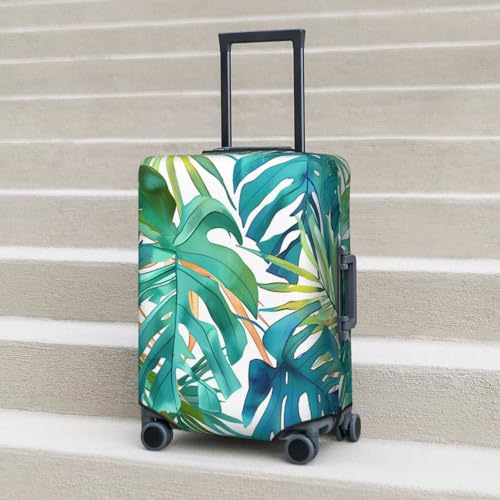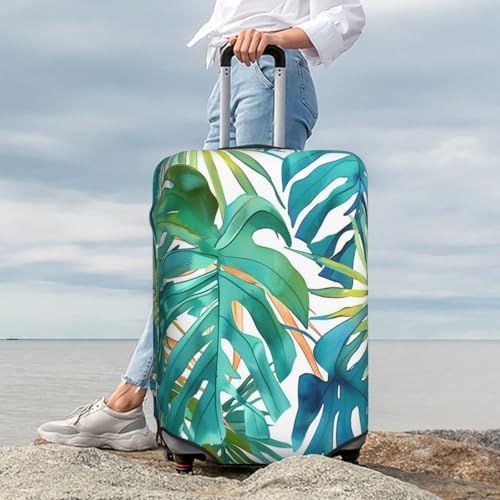 Teal Green Tropical Palm Leaves Travel Luggage Cover Elastic Suitcase Covers Washable Anti Scratch Luggage Dust Covers Protector, Fits 22-24 inch Luggage, M