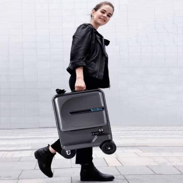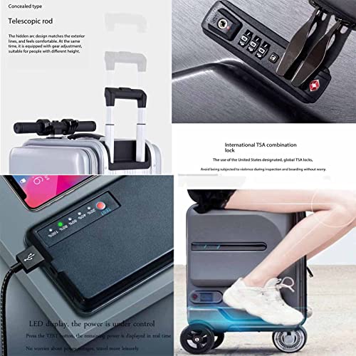 Smart Travel Trolley Suitcase Electric Car, Rideable Suitcase, Colorful Atmosphere Light, Smart Induction LED, Multi-Function Boarding Case, White (White)