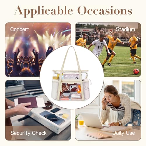 Missnine Clear Bag for Stadium Events Thick PVC Clear Tote Bag for Women with Side Mesh Pockets for Sports Concert Lunch Work