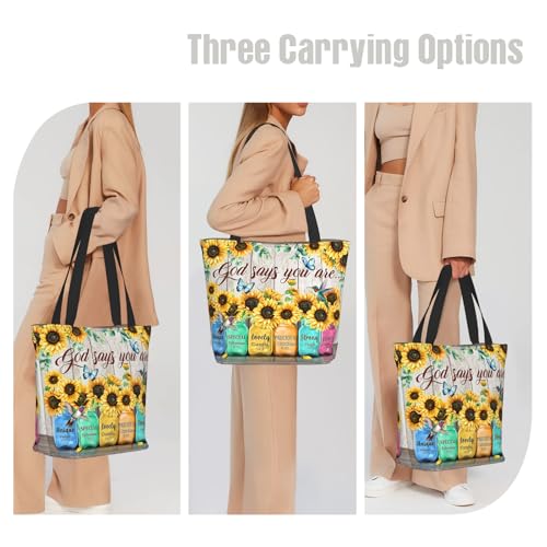 Fabric type: PolyesterCare instructions: Machine WashOrigin: ImportedDurable: Our bible tote bag is made of polyester with reinforced handles. Soft, lightweight, portable, combines practicality and fashion, religious gift for womenFaith-Inspired Design: Our god says you are tote bag perfect for Christian women, churchgoers, and faith-based giftsVersatile & contemporary: Our religious tote bags for women has timeless design for church services, Christian retreats, or casual outings, blending faith fashion with functionalityMeaningful Gift Choice: Great for baptisms, confirmations, birthdays, or spiritual encouragement—thoughtful for moms, sisters, friends, and prayer groupsMachine Washable: Easy-care christian tote bag is machine washable for convenience and measures 11” (W) x 7” (D) x 13” (H), offering ample space for groceries, books, or everyday essentials Perfect for everyday use. superior materials and excellent craftsmanship ensure long-lasting durability.