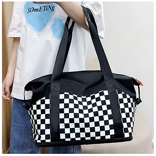 trending ! Black and White Checkered Travel Bag - Women's Carry-on for Airplane Seat Storage, Men's Business Briefcase, Versatile Gym Bag With Separate Compartments for Wet and Dry Items