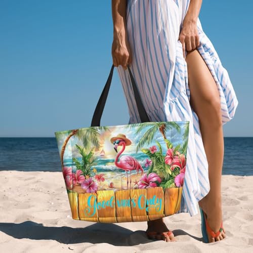 • 8-Pocket Organization: not ever lose your essentials! This flamingo beach tote bag features 1 main zippered compartment + 2 front slip pockets + 2 side pockets + 3 inner pockets (1 zippered) – ideal for phones, keys, sunscreen, towels, and even a 15” laptop