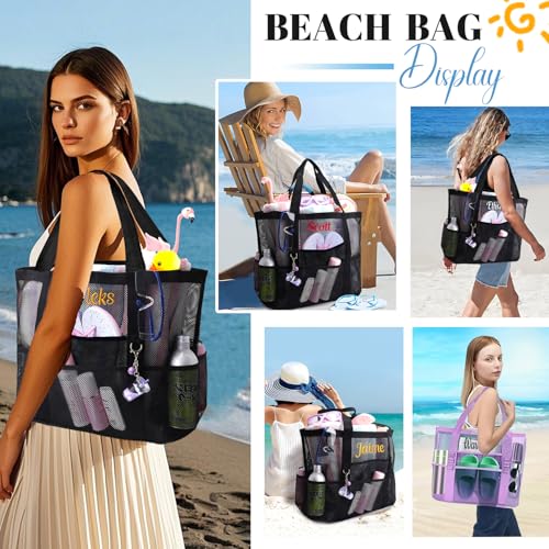 trending ! Ulico Personalized Mesh Beach Bag Embroidered Name, Custom Large Beach Tote Bags for Women Foldable Mesh Swimming Pool Bag with Pockets - Sandproof, Waterproof