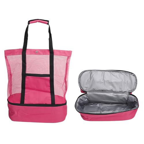 Beach Mesh Handbag, Lightweight Mesh Beach Bag Double Zippered Removable Cooler for Picnic Camping Travel