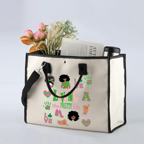 More information about Zuo Bao Greek Sorority Canvas Tote Bag Pink and Green Gift Sisterhood Of Sorors Shoulder Bag 1908 Sorority Paraphernalia