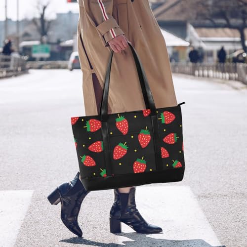More information about KLL Strawberry Minimalist Black trendy bag for women with zipper with zipper briefcase bags Large Handbag for office with maletin ejecutivo para mujer