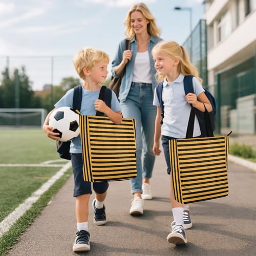 trending ! Kid Tote Bag for Boys Girls Women, Orange Black Strips Neon Water-resistant Reusable Grocery Bag with Zipper Pockets for School Shopping Travel Rainbow