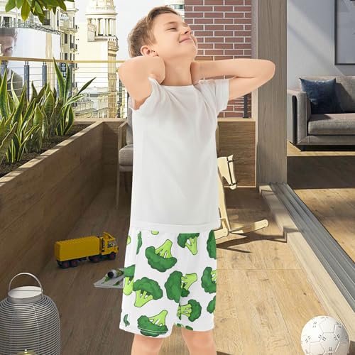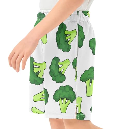 J JOYSAY Cartoon Broccoli Florets White Boys Athletic Shorts Kids Youth Casual Shotrs with Elastic Waistband Pockets