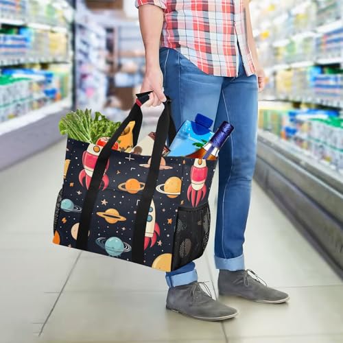 trending ! Nander Rockets and Spacecraft Foldable Tote Bag Waterproof Sandproof Women Beach Bag Handbag Gym Bag Travel Shopping Bag