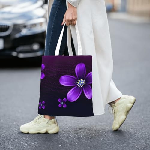 Canvas Tote Bag for Women Shoulder Tote Purse Reusable Grocery Bag purple flower Aesthetic Shopping Bags