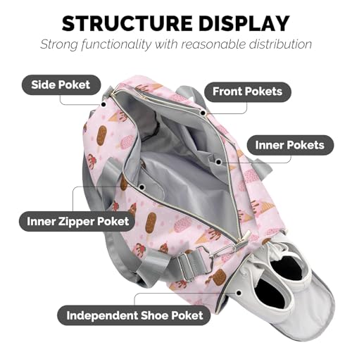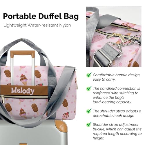 trending ! Elegant Ice Cream Custom Duffel Bag with Name, Waterproof Personalized Gym Bag, Travel Sports Overnight Bag with Shoe Compartment & Shoulder Strap