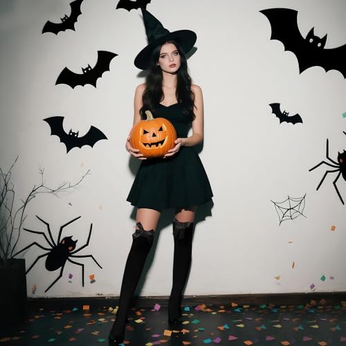 Fabric type: Up: nylon 90% spandex 10% Base: Cotton 95%. Spandex 5%Care instructions: Hand Wash OnlyOrigin: ImportedCharming Satin Bow Detail:Adorned with a cute satin bow at the top, these thigh-high stockings instantly elevate your look—ideal for cosplay or Christmas parties. The bow adds playful elegance, highlighting leg lines to make you stand out. Perfect with short skirts or dresses, they bring a sweet, charming vibe, letting you shine at Halloween, weddings, or casual outings with effortless allureStretchy Comfort:Crafted from high-quality material, these white knee high socks offer great stretch and a soft, breathable feel.. The stretchy design fits most heights, adapting to leg shapes for a snug, non-restrictive fit from morning to nightVersatile for Every Occasion:These knee high socks with bows come in white and black, suitable for various occasions - from Halloween costumes to wedding guest costumes.Wear with shorts and sneakers for a cute daily look, or pair with a party dress for Christmas or New Year’s. They’re ideal for Halloween cosplay, theme parties, or dances—adding flair to make your outfit unforgettableSecure Fit:Designed with strong elasticity, these thigh-high bow stockings stay put without sliding. The 55cm/21.6inch*9cm/3.54inch width ensures a secure thigh fit, while stretchy fabric adapts for a smooth look. Taller girls appreciate the length, and the one-size design flatters most body typesStylish & Slimming Effect:These thigh-high stockings create a sleek, slimming leg silhouette. Solid white and black easily match leather shoes or boots, making them a go-to for casual and formal looks. Whether aiming for sexy modern or cute playful style, they help achieve effortless chic. Perfect for everyday use. excellent materials and excellent craftsmanship ensure long-lasting durability.