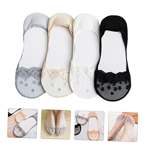 Why Choose ABOOFAN 4pairs Summer Cotton Lace Socks for Women Embroidered Invisible Boat Socks Anti-slip Heel Design for Low Cut Shoes Random Colors?