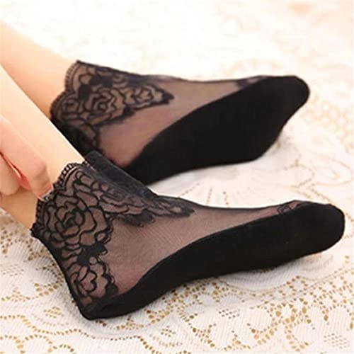 YOLAI 1 Pair Glitter Sheer Mesh Transparent Socks Women Ultrathin See Through Lace Elastic Ankle Socks
