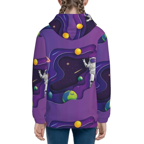 trending ! Astronaut on Mission in Outer Space Kids Pullover Hoodies Boys Zip Up Sweatshirts Girls Athletic Clothes with Pocket
