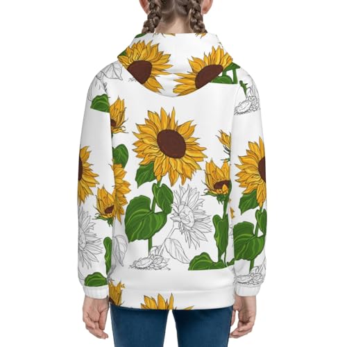 trending ! Plump Sunflower And Sketch Kids Pullover Hoodies Boys Zip Up Sweatshirts Girls Athletic Clothes with Pocket