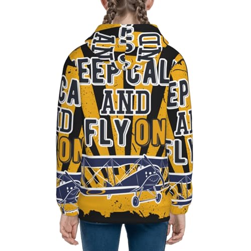 Keep Calm and Fly On Kid Hoodies Boys Zip Up Sweatshirts Girls Pullover with Pocket