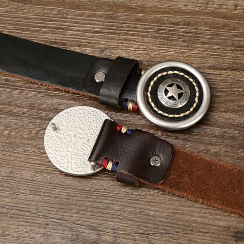 More information about Mens Western Cowboy Belt, Pentagram Pattern Buckle, Vintage Country Leather Belt For Jeans