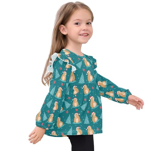 Christmas Cute Capybara Girls Shirts Cotton Long Sleeve Ruffle Toddler Tee Tops