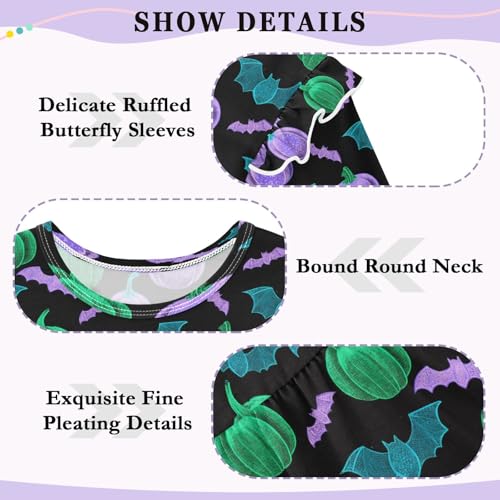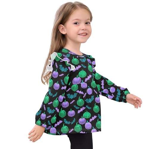 Fluorescent Pumpkin Bat Girls Shirts Cotton Long Sleeve Ruffle Toddler Tee Tops