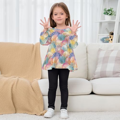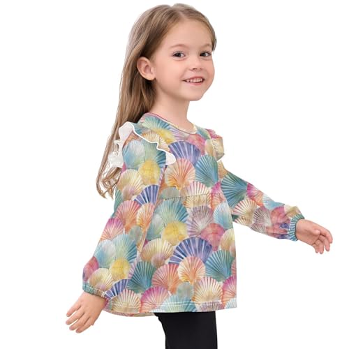 Colorful Seashell Q Girls Shirts Cotton Long Sleeve Ruffle Toddler Tee Tops