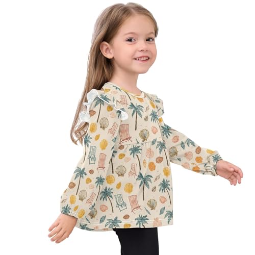 trending ! Palm Trees Beach Chairs Girls Shirts Cotton Long Sleeve Ruffle Toddler Tee Tops