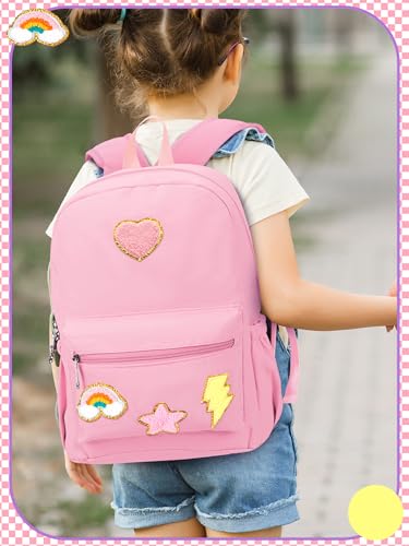 trending ! Preppy Backpack for Girls Back to School Gift School Book Backpack with Rainbow Chenille Patches(Pink)