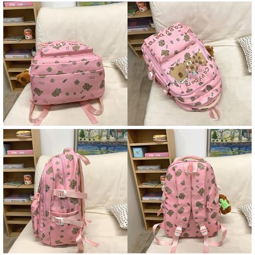 trending ! Capybara Backpack Nylon Funny Large Capibara Bag Kawaii Capivara Cute Kapibara Bag Capy Bara Cappy Barra Daypack (Pink)