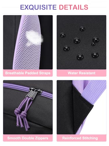 VASCHY Backpack for Girls, Cute Elementary School Bag Bookbag for Primary Schooler Kids with Sparkling Sequin Clear Pocket Black Purple