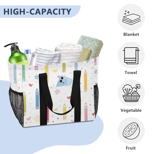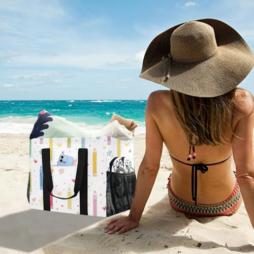 Colorful Pencils and Crayons Pattern Beach Tote Pool Bags for Women Ladies Large Waterproof Gym Tote Carry On Bag for Weekender Swim Gym Shopping Travel Daily Bag