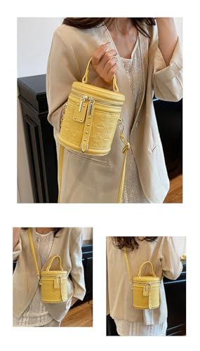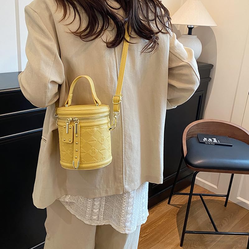 Crossbody Bucket Bags for Women Small Quilted Cylinder Round Purses Shoulder Mini Leather Barrel Top Handle Handbags