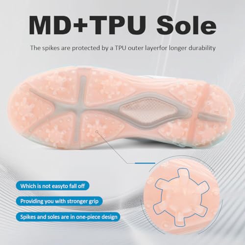 Sole material: RubberOuter material: Microfiber upperClosure type: Lace-Up【Waterproof Upper】Women's Golf Shoes are Made of High-Quality Waterproof Material, Allowing You to Fit Into a Variety of Scenarios Indoors and Outdoors, Ensuring That Your Feet Stay Dry and Fresh.【MD+TPU Sole】Fixed Spikeless Women Golf Shoes Sole Gives You Great Grip With Excellent Slip Resistance.【Spike Protection】The Outer Layer of The Ladies Spikes of The Golf Shoes has a exceptional TPU Protective Cover, Which Extends The Life of The Golf Shoes While Taking Into Account The Anti-Slip Properties.【FOOT SUPPORT】These Professional Golf Shoes are Designed With Arch Support, Which Conforms to The Shape of Your Feet and Facilitates You to Wear Them for a Long Time.【Attention】Please Refer to Our Size Chart Before Ordering, If You Have Wide Feet or High Insteps Please Choose a Larger Size to Purchase, Any Questions About The Product Please Contact Us. Perfect for everyday use. finest materials and excellent craftsmanship ensure long-lasting durability.
