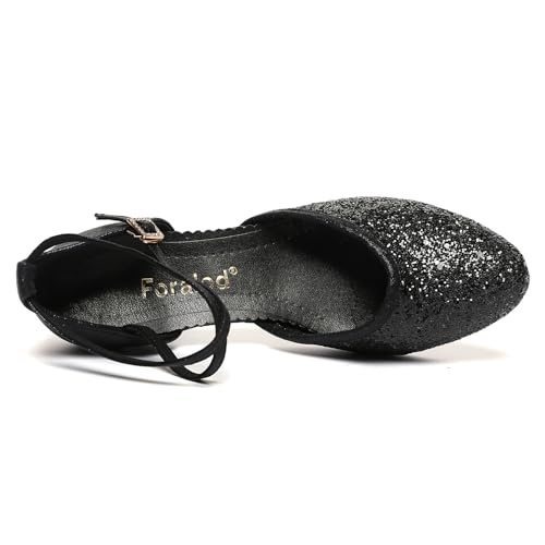 Sole material: RubberOuter material: LeatherClosure type: BucklePROFESSIONAL DANCE SHOES: This is a pair of professional dance shoes designed and made by Foralod. Fully considering the various scenarios during dance practice and performance. The suede outer-sole has excellent anti-slip performance, suitable for wearing in the dance room. It is also wear-resistant, soft and kick-resistant. At the same time, it does not affect the dance, and the shoes fit as if they were grown on the feet.GLITTERS FINELY CRAFTED: These womenβs ballroom dance shoes are covered with multiple layers of PET hexagonal glitters, bringing concave-convex layering and all-around refractive sparkle. The bottom is thickened twill fabric, multi-layer strong glue with cold paste technology, the glitters are not easy to fall and break.2-INCH LOW HEELS: The stable and comfortable low heels dancing shoes designed for women. After many test corrections, the force is even, not crooked feet. Suitable for a wide variety of dance styles, such as salsa, latin, folklorico, swing, etc.ELEGANT FOR WIDE & NARROW FEET: The counter of the dance heels is made of dual cold and heat shaping technology, seamless, rounded and full, with smooth lines and no abrasion of the feet. Double drawstring design with adjustable ankle straps, no matter what your foot shape is, you can easily fit it. Stuck in the middle of two sizes and wide feet please choose one size up.EXQUISITE DESIGN: Rhinestone buckles add highlights to the character shoes. These ankle strap heels have a 1920s flapper style. Genuine and attractive, dance your unique self. Perfect for everyday use. excellent materials and excellent craftsmanship ensure long-lasting durability.