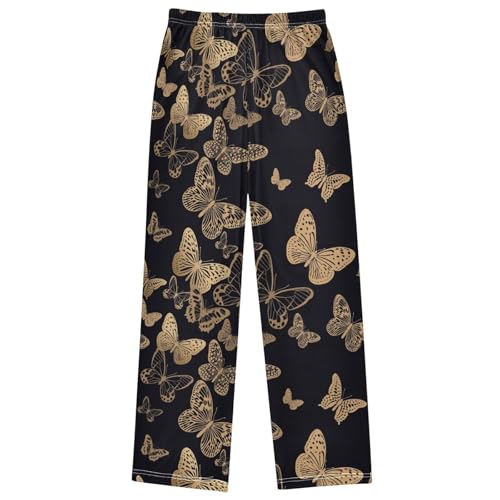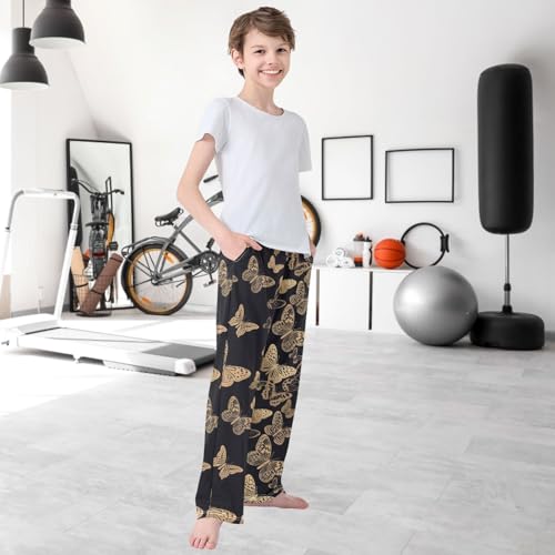 trending ! Boy's Pants Black Gold Butterfly Jogger Pants Elastic Waist Long Bottoms Trousers with Pockets 6-14 Years