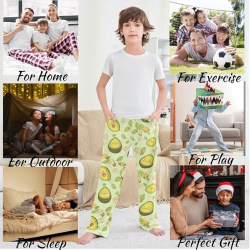 trending ! visesunny Boys Pants Avocado Character Yellor Flower Leaf Jogger Pants Elastic Waist Long Bottoms Trousers with Pockets