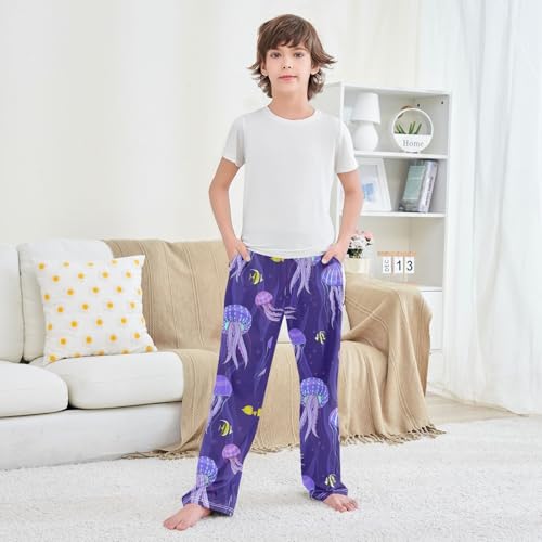 ZZXXB Jellyfish Swimming Boys Long Pants silky Trousers Elastic Waist Kids Lounge Bottoms with Pockets S-XL