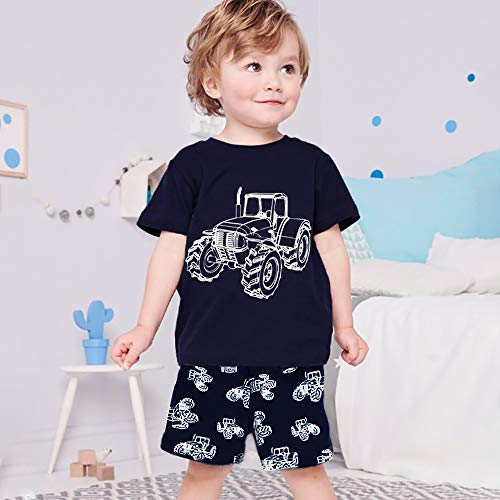 - Short sleeve pj's set with various patterns, such as Monster Truck, Tractor, Dinosaur, Planets, Bulldozer and so on; outstanding kids short set for sleep wear, daily wear, casual wear, home wear, school wear