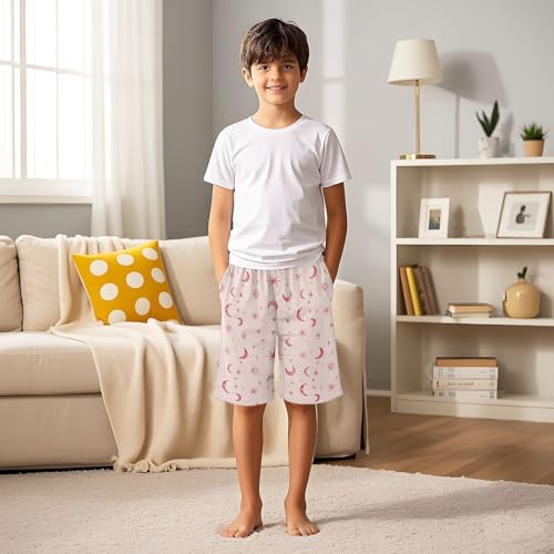 Pink Star Moon Pajama Pants Short Sleep Pants Pajama Bottoms Elastic Waist with Pockets 6-14 Years