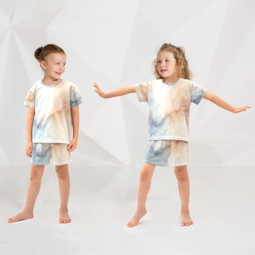 More information about Teal Watercolor Marble Kids Pjs Set Boys Girls Summer Short-Sleeve Sleepwear Pajamas 2PCS