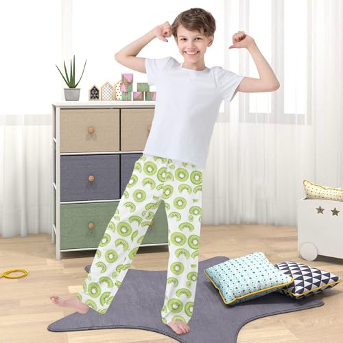 Pajama Bottoms, Pajamas Long Pant Kiwi Fruit Lounge Wear Elastic Waist Green Sleep Pants silky Pjs Sleepwear