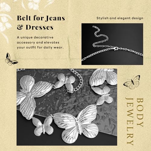 trending ! Silver Waist Chain Y2K Butterfly Chain Belt Alloy Boho Metal Body Belly Chain Dress for Girls and Women