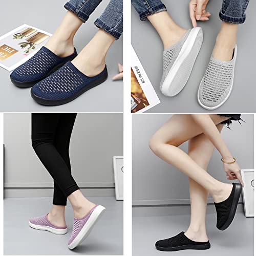 WENOREG Women's Platform Hollow Out Slip On Lightweight Mule Sneakers,Summer Open Back Flats Fashion Mesh Breathe Comfort Walking Shoes Closed Round Toe Low Top Loafer
