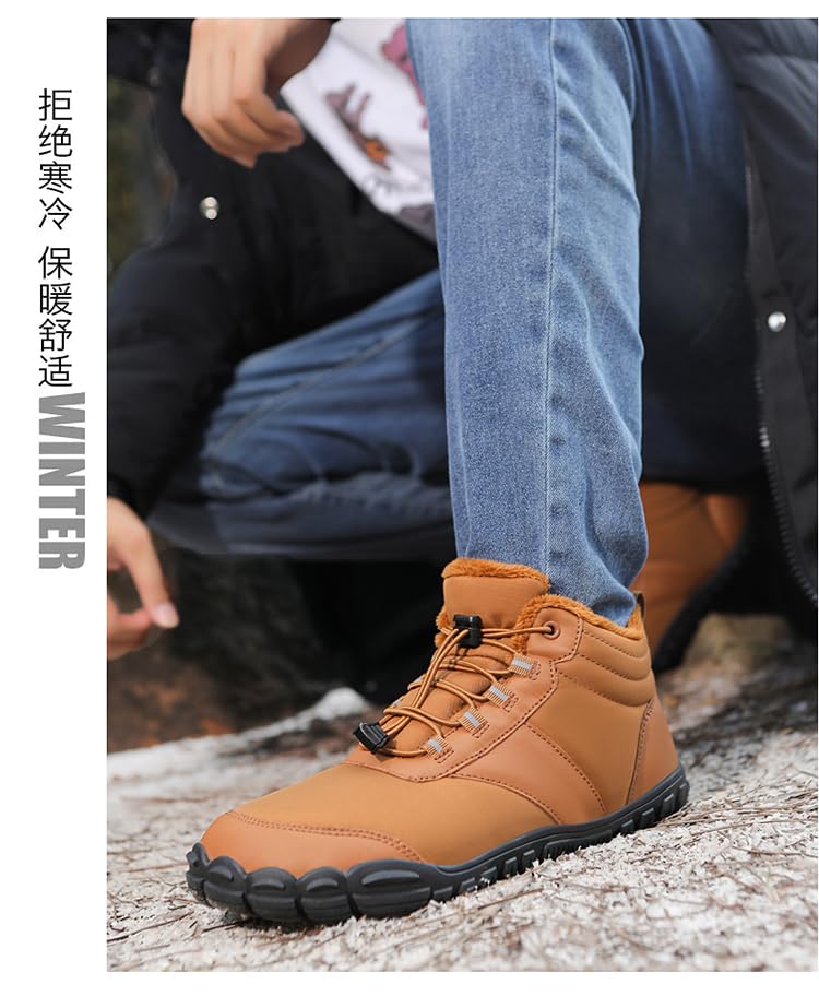 Hike Barefoot Shoes for Women Men Winter Fur Lined heated Zero Drop Snow Boot Slip On Barefoot Footwear Waterproof Outdoor Walking Shoes High Top Wide Toe Box Shoe Non Slip Sneaker Unisex