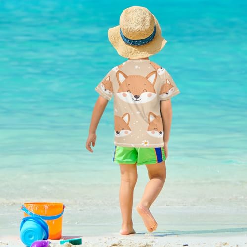 More information about Boys Swing Shirts Fox Daisy Cartoon Flower Rashguard Short Sleeve Kids T-Shirts Sun UPF 50+