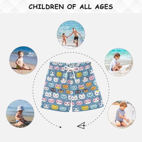Cartoon Cat Blue Boys Swim Trunks Toddler Shorts Swimwear Boardshorts