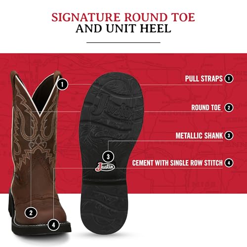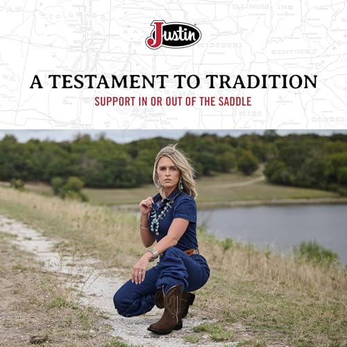 trending ! Justin West Inji 11" Western Boot for Women, Premium Full Grain Leather, Cement Construction, Slip-Resistant Round Toe, Metallic Shank