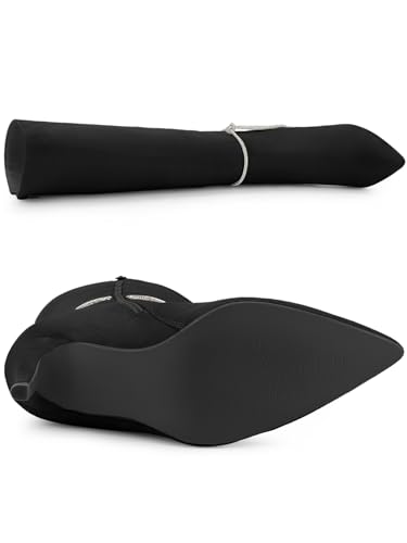 trending ! Allegra K Women's Rhinestone Crystal Chain Pointed Toe Stiletto Heels Knee High Boots