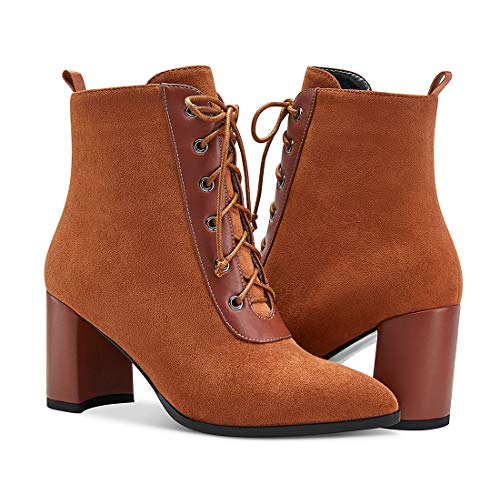 trending ! Castamere Womens High Block Heels Ankle Boots Pointed Toe Booties with Laces 7.5CM Heels