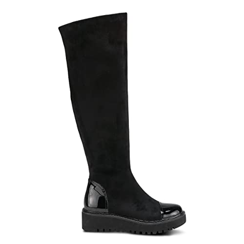 Fabric type: 100% Micro SuedeOrigin: ImportedSole material: RubberOuter material: Faux SuedeRound toe, synthetic suede and high shine synthetic patent piecing, and fashion platform with lug sole.Inside zipper closure.smooth textile lining.Microfiber insoleEva outs Perfect for everyday use. finest materials and excellent craftsmanship ensure long-lasting durability.