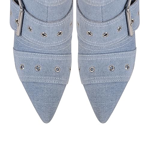 Why Choose VERISSON Close Point Toe Boots Embellished Buckle Belts Stiletto Heeled Booty?